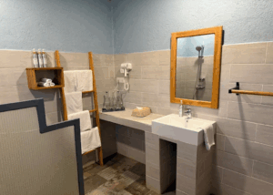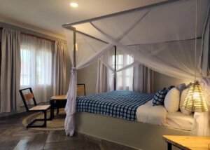 Guests can choose between double, twin, or family-style accommodations, each designed for both comfort and charm. The spacious suites feature king-size and single beds draped in elegant mosquito nets, and open-plan bathrooms fitted with high-quality amenities. Every piece of furniture has been handcrafted by local artisans, blending wood and metal in designs that celebrate Tanzanian artistry and tradition.