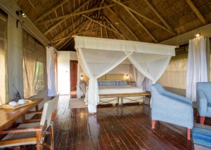 Guests can choose between suite rooms (capacity 2-3 guests) or family tents which consist of two interconnected tented rooms with a shared bathroom and private porch.