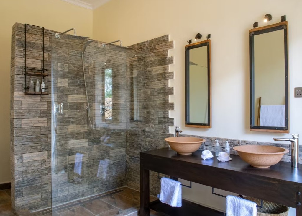 Each suite boasts an en-suite bathroom with modern fixtures and amenities. The bathrooms are spacious and feature walk-in showers, freestanding bathtubs, and double vanities. Guests can indulge in a relaxing bath or refreshing shower while still feeling connected to nature through carefully positioned windows that offer glimpses of the outdoors.