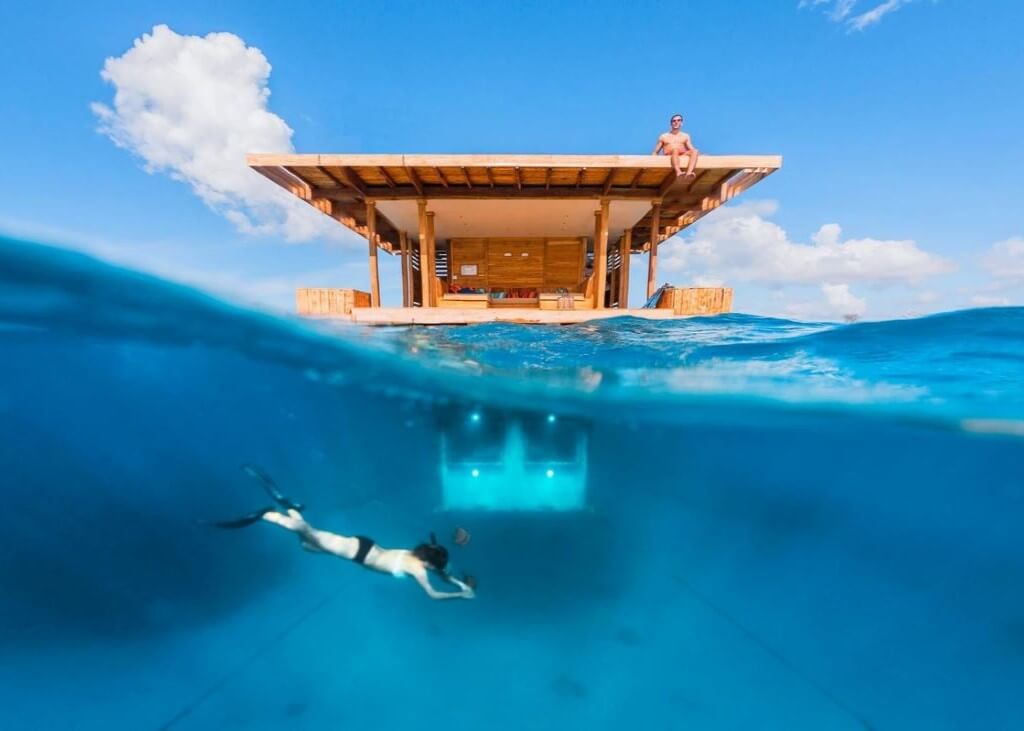 The jewel in the crown is the iconic Underwater Room, a singular and mesmerizing experience. Submerged beneath the turquoise waters, this exclusive suite provides panoramic views of marine life, offering an unparalleled connection with the ocean. It features a thoughtfully designed bedroom and a unique bathroom facility.