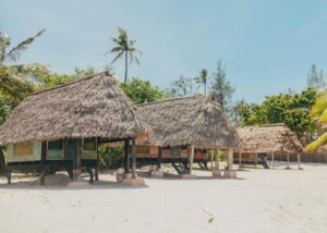 Guests can stay in simple thatched huts close to the beach, enjoying a rustic yet cozy experience. These huts are equipped with double mattresses, mosquito nets for a peaceful night’s sleep, and power sockets for convenience. For those desiring more comfort, the camp offers ensuite cabins and safari tents.