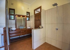 Bathrooms are generously sized and feature elegant slipper bathtubs, indoor showers, and the added luxury of an outdoor shower. For families or larger groups, the lodge offers three specially designed suites, each comprising six interconnected rooms that comfortably accommodate up to six guests.