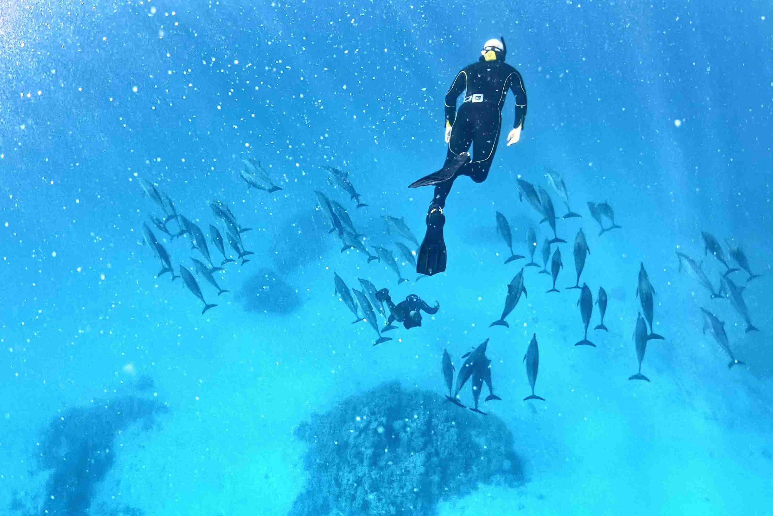 You have the opportunity to jump into the waters with your snorkel set as soon as you arrive at the dolphin spot, where you can usually swim fairly close to the dolphins. A truly wonderful and unique experience!