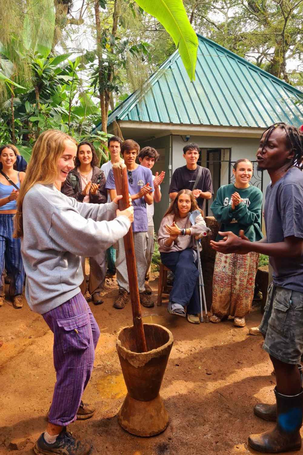 After the waterfall, a coffee experience awaits you. Learn about the cultivation, drying, roasting, and processing of coffee. Participate in grinding the coffee, traditionally accompanied by Chagga songs and dances—a delightful way to immerse yourself in the local culture. Once the coffee is ready, enjoy a cup of your own batch!