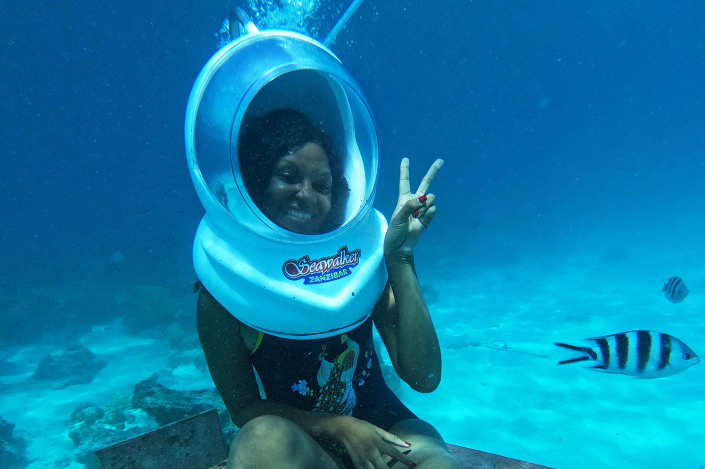 Experience the underwater world of Zanzibar in a completely unique way by walking on the ocean floor. This sea walk allows you to explore clear turquoise waters, tropical fish, and vibrant reef life without the need for diving experience. Wearing a special helmet that supplies air, descend safely to the seabed and enjoy an unforgettable perspective of the Indian Ocean.
